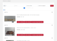 La logique et le front sont gérés par WordPress, en relation avec une base de données Mysql. Pour gérer les ventes et les lots, j'ai créé un plugin "maison" spécialement pour l'occasion. Il s'occupe de créer à la volée les lots (sous forme de posts d'un type spécial), de récupérer les images et de les associer aux lots correspondants. Un second plugin a été réalisé, pour traduire dans un second temps les textes des lots. Ce plugin utilise l'API DeepL pour une traduction automatisée et précise.
